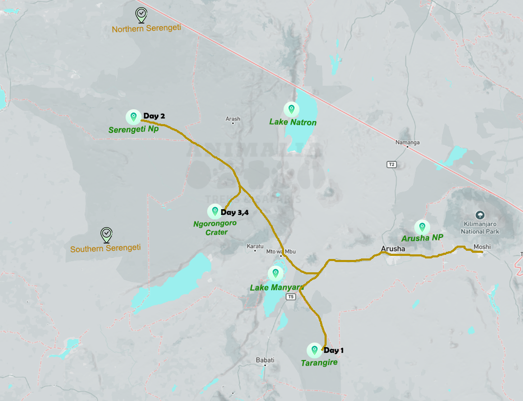 Experience the thrill of our 4-Day Classic Tanzania Family Safari holiday package, offering an exciting chance to explore the stunning parks of northern Tanzania. Journey through the vast plains of Serengeti National Park, where sightings of the entire Big Five await. Delve into Tarangire National Park, renowned for its abundant elephant population, and discover the wonders of Ngorongoro Crater, known locally as the “garden of animals,” providing an excellent opportunity to spot the Big Five in just one day.
