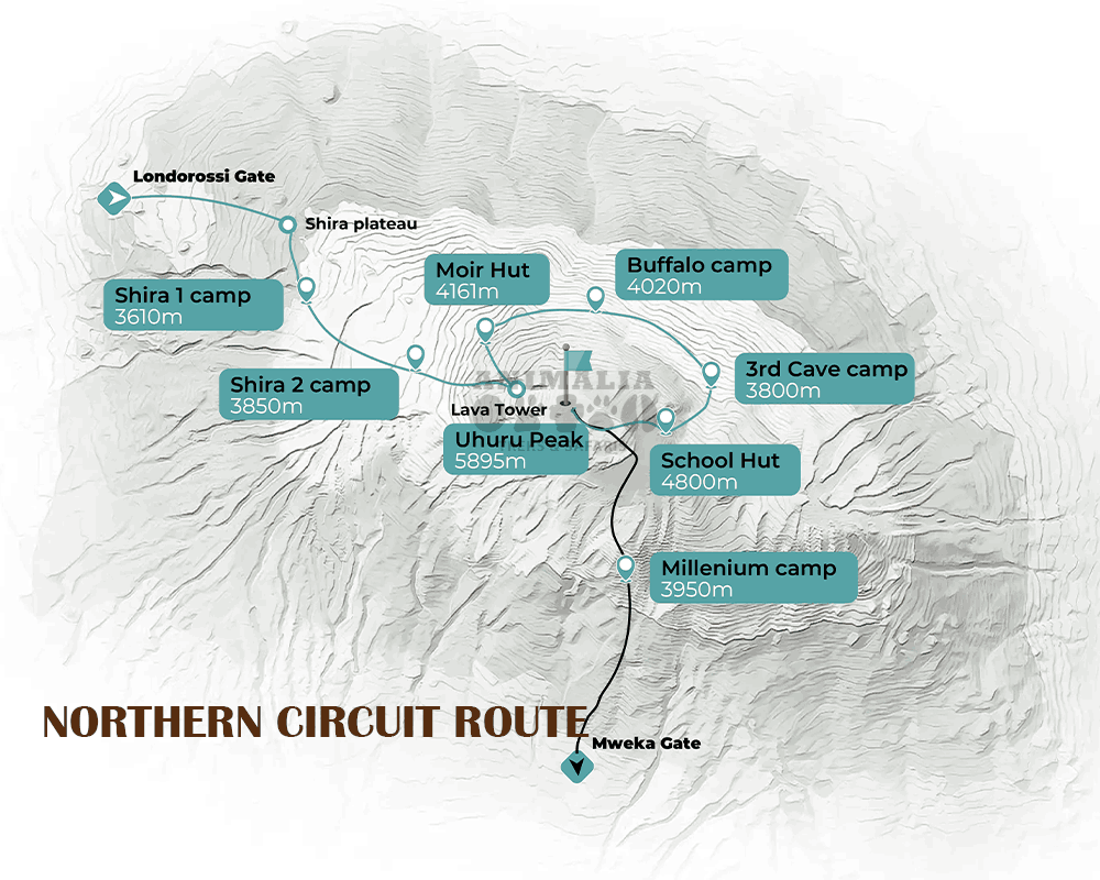 Unlike other trails on Kilimanjaro, the Northern Circuit demands a minimum of eight or nine days to complete. The eight-day journey forgoes the additional acclimatization day typically spent at Shira Camp 2, proceeding directly to Moir Camp instead.