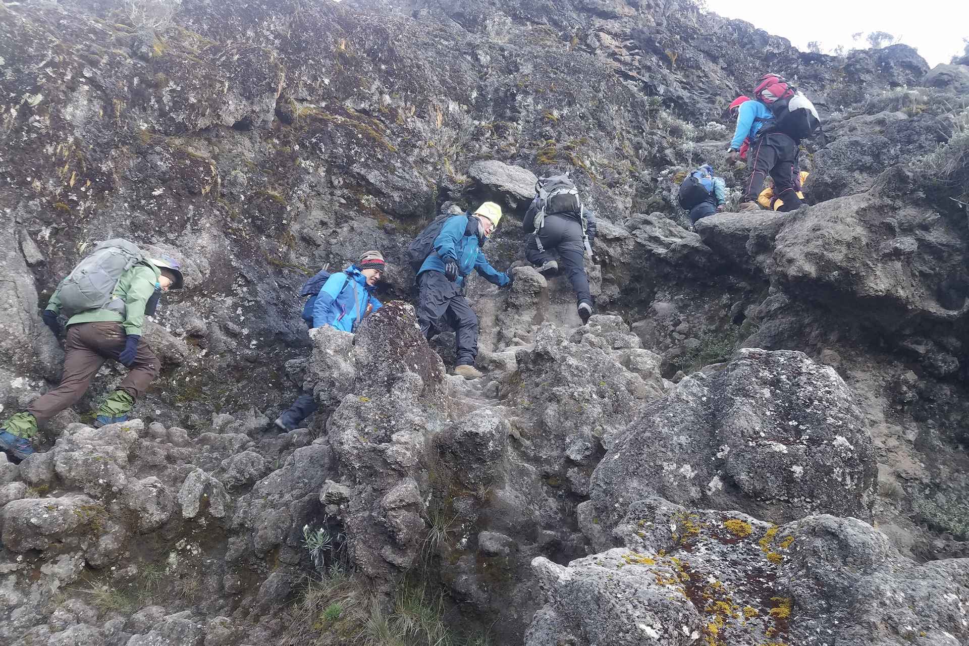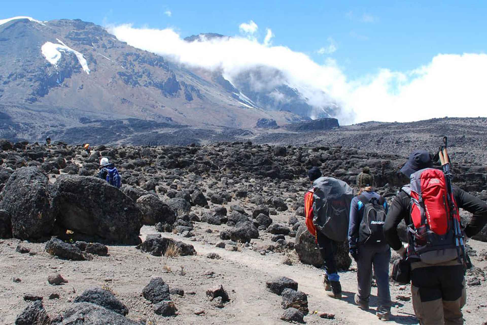 Day five involves a moderately steep climb out of Moir Valley. Trekkers can take a small detour here to climb the summit of Little Lent Hill at 4,375 meters before returning to the Northern Circuit trail. From here the route follows a series of inclines and declines, skirting around the northern slopes of Kibo to Buffalo Camp (4,020 meters).The trek gives great vistas out across the plains that lie north of Kilimanjaro and stretch out to the Kenyan / Tanzanian border. You will arrive at Buffalo Camp just after midday, where you will have lunch and have time to rest after a long day hiking.